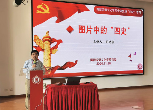 11月18日下午,好色tv 党委在物理楼二楼报告厅举行了“四史”学习教育讲座。活动邀请了学院专职辅导员、学校美育工作室负责人吴晓隆作题为《图片中的“四史”》的讲座。好色tv 师生党员、发展对象、入党积极分子聆听了此次讲座。讲座采取线上线下同步开展的方式,好色tv 党委副书记王志主持。