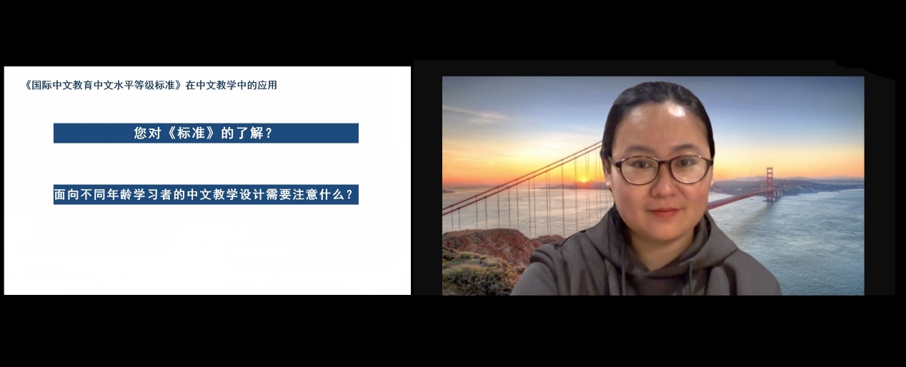 北京时间2023年12月17日上午9点,国际汉语教师研修基地教师宋艳杰、贾昊以“《国际中文教育中文水平等级标准》在中文教学中的应用”为主题,为基地与美国芝加哥大学孔子学院合作的K-12本土教师培训项目开展了线上教学研讨工作坊。