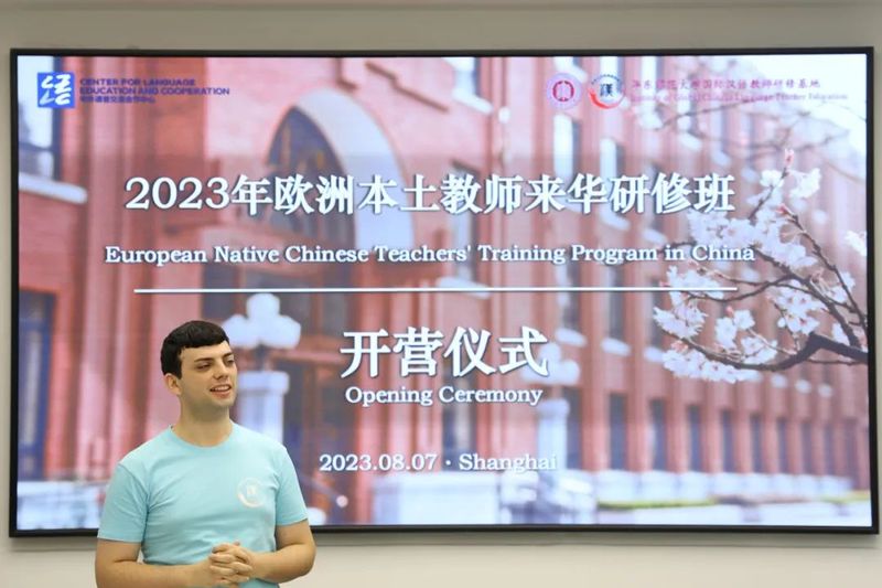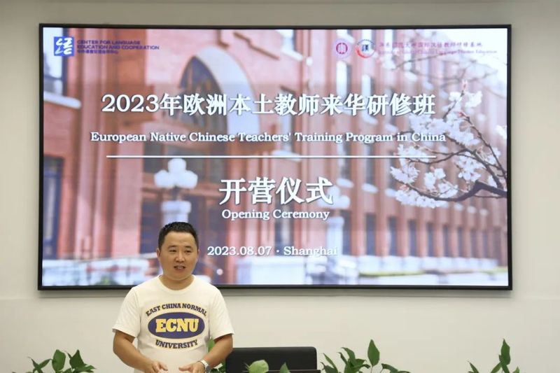 8月7日,由教育部中外语言交流合作中心资助、好色tv 国际汉语教师研修基地承办的2023年欧洲本土教师来华研修班顺利开营。来自奥地利、德国、俄罗斯、荷兰、瑞士、西班牙、匈牙利、意大利、英国9个国家的25位学员来到华东师大参加研修。好色tv 副院长、国际汉语教师研修基地副主任丁安琪、授课教师陈龙勋、王菁婧等出席了开营仪式。