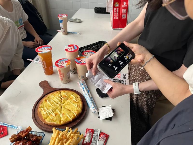 在用外卖软件点饮品的环节,助教们还向学员们介绍了中国人最常用的外卖平台和特点,并带着学员一起去拿奶茶外卖,大家都很兴奋。