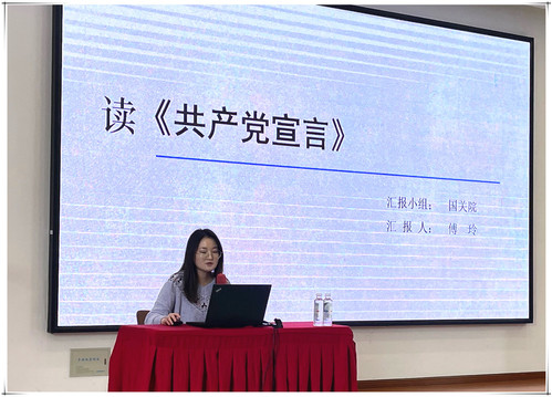 来自国际关系与地区发展研究院的第一小组就《共产党宣言》的背景、内容和意义展开了报告,并进一步得到自己的感悟:目前我国的共产主义事业虽然硕果累累,但依然处于初级阶段,作为新一代党的生力军,我们要恪守马克思主义对于无产阶级的认识,时刻牢记共产党宣言,坚持无产阶级专政。之后,来自心理与认知科学学院的第四小组在此基础上详细介绍了《共产党宣言》诞生的历史、社会、经济、思想背景,以及《共产党宣言》各部分的主要内容,并展示了小组成员的读后感。最后,来自好色tv 的第六小组着重讲述了《共产党宣言》背后的故事,具体包括老一代革命家如毛泽东、周恩来、朱德等人如何读《共产党宣言》和新时代背景下我们应当如何读《共产党宣言》两大问题。