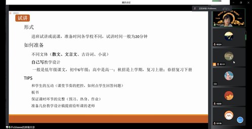 19级研究生支部党员范一凡分享了上海民办初中的备考经验。最后还分享了如真诚大方不露怯,有条理的基础上有重点、个性化,主动输出、引导到教学相关的话题等心得。