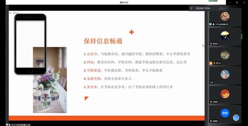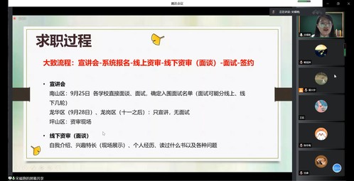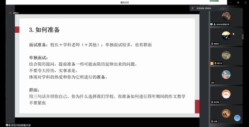 19级研究生支部党员李培华讲述了去上海公办初中语文学科的求职经历,分别介绍了浦东新区、闵行区和松江区的公立学校招聘时间节点,对如何准备求职简历谈了自己的见解。
