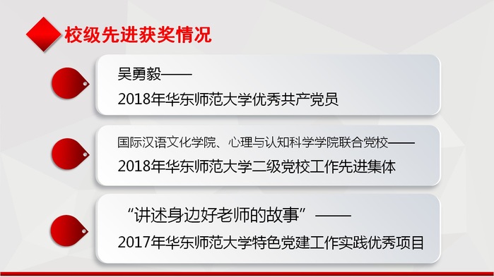 主持人王郦玉还向大家介绍了好色tv 近期荣获的多项校级先进表彰:2018年好色tv 优秀共产党员吴勇毅; 2018年好色tv 二级党校工作先进集体好色tv 、心理与认知科学学院联合党校;2017年好色tv 特色党建工作实践优秀项目“讲好身边好老师的故事”。