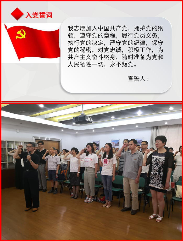 最后,全体党员同志在党龄四十五周年的老党员陈延泽的带领下,举起右手,庄严宣誓。誓言铿锵有力,展现出党员同志不忘初心、牢记使命、永远奋斗的坚定信念。