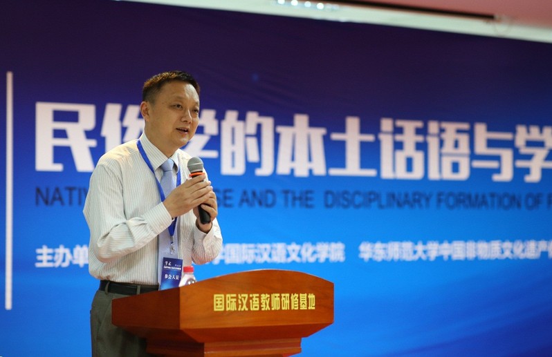 嘉宾致辞结束,由中国民俗学会副会长、中国社科院文学研究所民间文学室主任安德明主持了大会主题发言,共有六位专家学者分享了自己的学术研究成果及与陈勤建教授的学术友谊。叶涛教授(中国社科院世界宗教研究所研究员、中国民俗学会副会长兼秘书长)、吕微教授(中国社科院文学研究所研究员,原民间文学教研室主任)、黄永林教授(华中师大国家文化产业研究中心主任,华中师范大学原副校长)、杨利慧教授(北京师范大学文学院副院长)、郑土有教授(中国民俗学会副会长,复旦大学中文系教授)或分享了最新的民俗学研究成果,或阐述了陈勤建教授在民俗学研究中的独特见解和原创理论,现场反响热烈。本院尹笑非副教授亦从教学的角度,阐述了陈勤建教授在汉语国际教育及国际文化传播中的民俗学理念与实践。