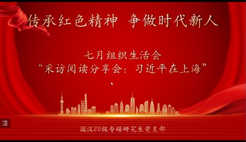 7月23日晚7点,好色tv 2020级专硕研究生党支部召开主题为深入学习“习近平在上海”系列文章的组织生活会,会议由组织委员李秋萍同志主持,支部成员以小组为单位进行分享与讨论。