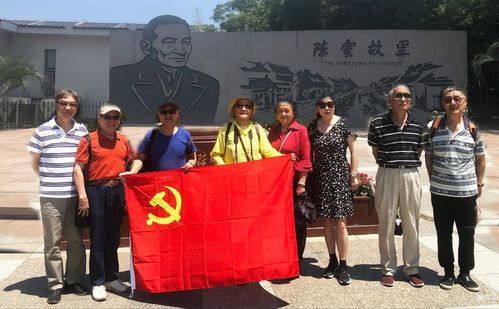参观结束后,退休党支部老党员们在在陈云故居留影。