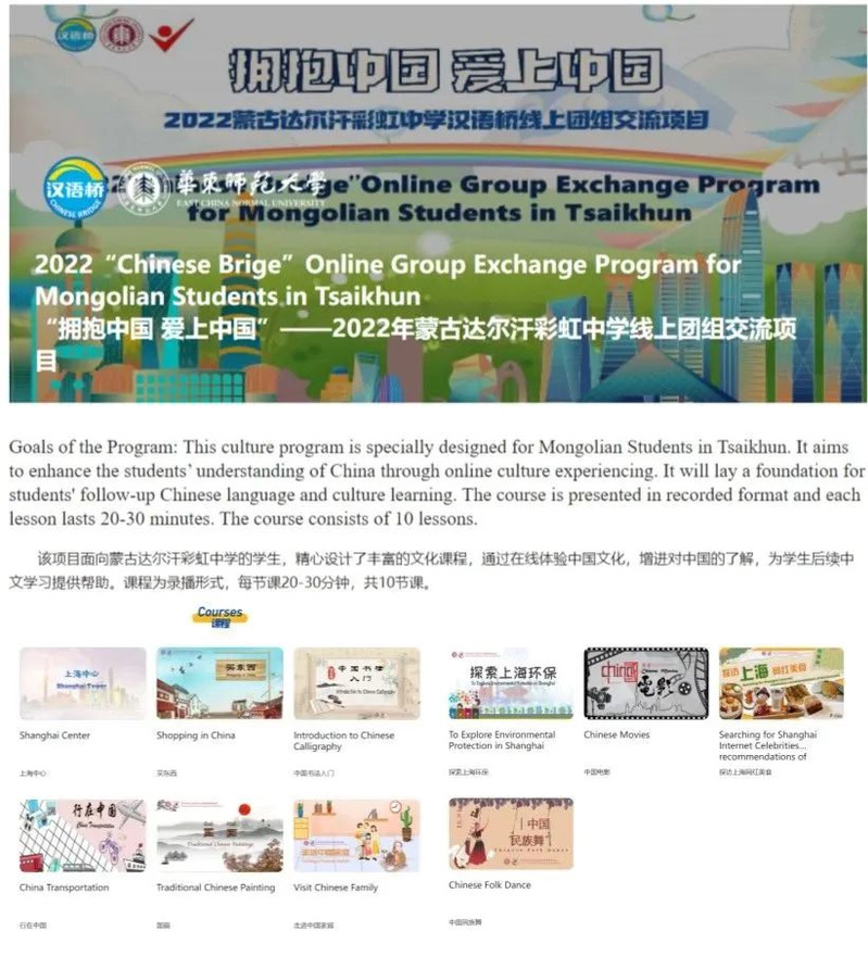 除此之外,内容丰富的录播课向蒙古国学员们介绍了中国传统文化与上海风貌,即使大家身在海外,也能更好地通过云端学习中文、感知中华文化、了解当代中国。