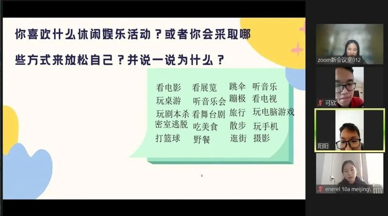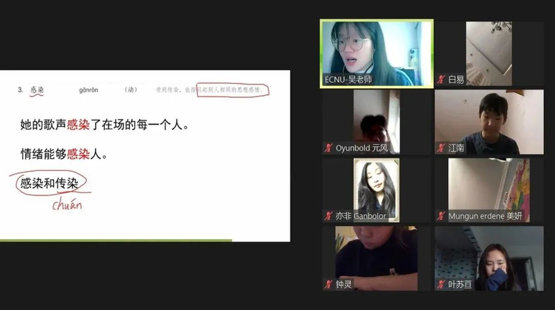 老师们形式多样、干货满满的课程深受学员们的喜爱。宁静同学表示,华师大老师的耐心讲解以及友好态度使她更加喜欢汉语学习。小爽同学通过学习,收获颇多,不仅认识了中国的生词,还了解到了很多中国的风土人情、见识了中国人的热情友好。微笑同学觉得自己在直播课学习期间学到了很多,向授课老师表示了感谢,并希望蒙古达尔汗彩虹中学与好色tv 友好关系不断加强,也希望自己能有机会来华师大学习。