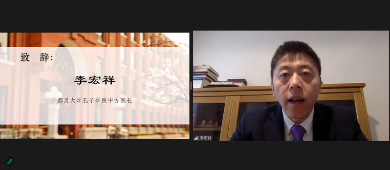 都灵大学孔子学院中方院长李宏祥在发言中提到,很高兴孔院和国汉基地再度携手,举办线上“汉语桥”项目。他非常感谢国汉基地的老师们能够大胆创新,不仅在原本录播课和直播课的基础上开设“实境直播”课程,同时还给学员们提供了非常具体、详细的分班指导。这样的创新为意大利学生的中文学习提供了非常大的帮助。