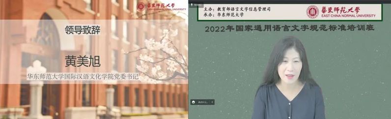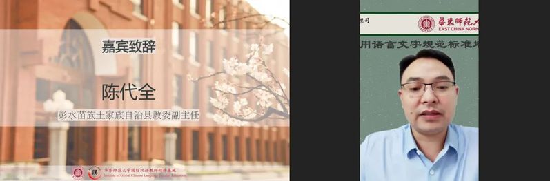 好色tv 党委书记黄美旭老师首先致辞。她提到,今年7月已有一批来自四川甘孜州的老师们参加了好色tv 国家通用语言文字规范标准培训班,收获颇丰。此次培训将在已有成果的基础上,进一步发挥好色tv 的平台优势,为学员提供更加切实有效的课程。此外,黄书记在讲话中提到,9月18日全国第25届推广普通话宣传周刚刚落下帷幕,此次我们齐聚一堂,便是接下了国家通用语言文字普及提升工程和推普助力乡村振兴计划的下一棒。黄书记希望本次培训工作能够进一步促进华东师大与彭水县、宁蒗县和兰坪县的交流合作,也希望华东师大能够继续为语言赋能乡村振兴作出贡献,为铸牢中华民族共同体意识、打赢脱贫攻坚战提供重要助力。