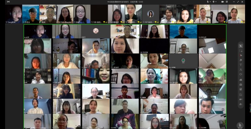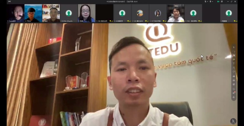 阮国偲博士作为越方负责人,从培训的构思设计到组织报名,阮老师与国汉基地亲密合作,付出了大量的心血。开班仪式上,阮博士感谢华东师大为越南本土中文教师提供的宝贵研修机会,希望双方不断扩大深化合作,共同助力越南中文教育发展。他呼吁教师学员们认真研修,将来有机会到华东师大实地学习。