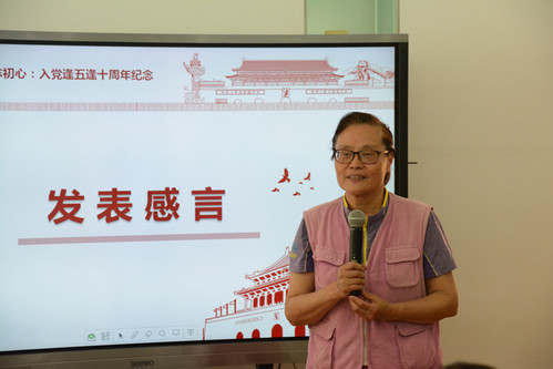 为教育党员牢记党的宗旨、不忘入党初心,在每年纪念建党活动中,学院党委都会安排“入党逢五逢十周年纪念”仪式。仪式上,院长张建民宣读“入党纪念光荣榜”名单。黄薇、张建民和院党委委员吴勇毅为周年纪念的各位老师赠送了纪念品并合影留念。各位老师依次发表入党纪念感言,表示要不忘初心,牢记使命,以理想信念滋养初心,以担当奉献践行初心。几代国汉学人的“初心”跨越了45载,但他们都拥有一份同为共产党员的初心和使命。