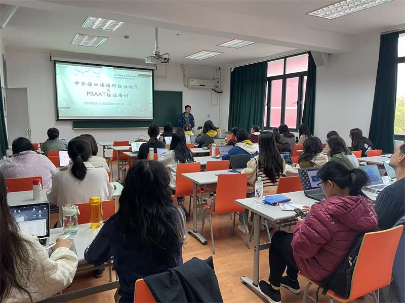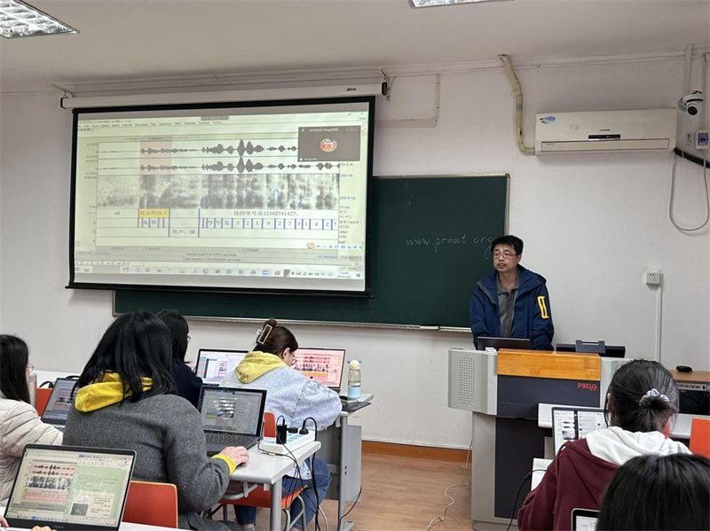 培训期间,师生们专注聆听,积极提问,凌锋老师耐心回答。现场交流互动非常活跃。参与师生们在凌锋老师的指导下,逐步掌握了Praat的基本使用方法和技巧,对中介语口语标注规范有了更为清晰的认识,纷纷表示收获颇丰。