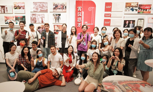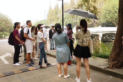 参观完校史馆,跟随覃高敏老师的步伐,师生们来到丽娃河边。覃老师为中外学生生动讲述了丽娃河和丽虹桥的传说故事,同学们听后都感觉我们的校园又增色了不少。