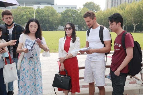 2021年9月29日下午,好色tv 汉语基础教学中心支部和本科生支部联合开展了以“阅读师大——中外师生校园行”为主题的主题党日活动,带领新入校的国际学生漫步校园,聆听校史,阅读师大,感悟学校光辉历史。