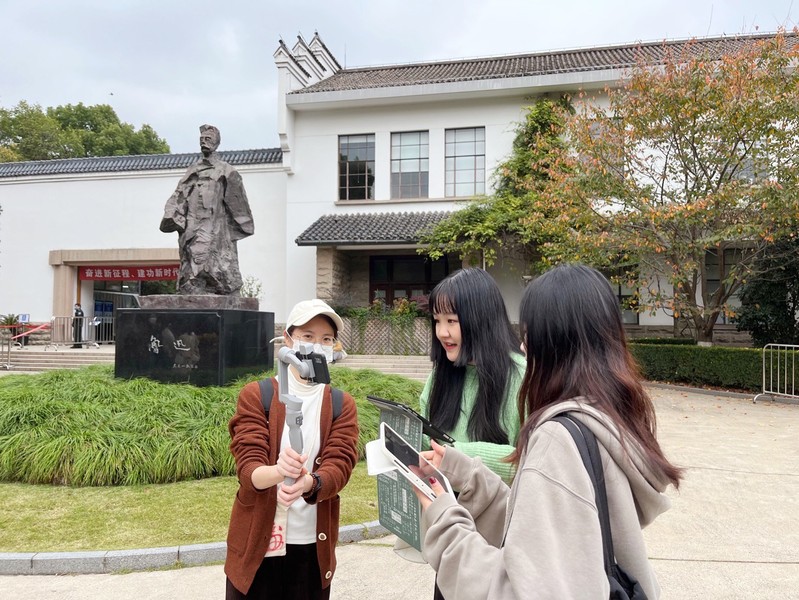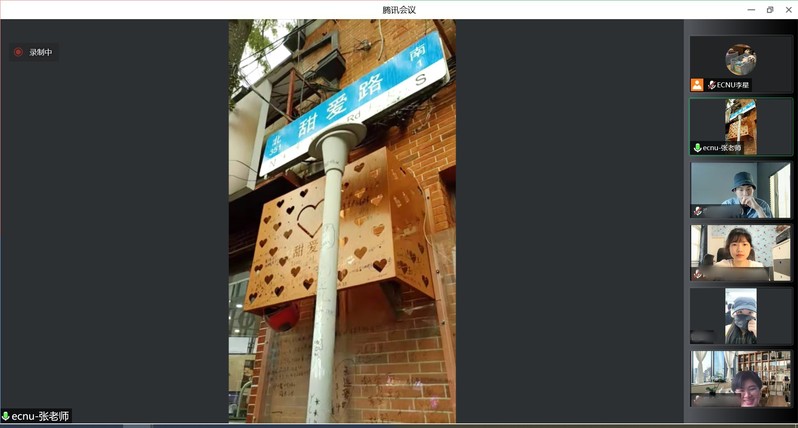 随着直播镜头,教师团队带领学员依次云游了上海鲁迅公园和甜爱路。在鲁迅公园,学员们通过直播课堂参观了鲁迅纪念馆“一纸书信,万千情怀”的展览,了解了鲁迅与朱安的包办婚姻以及和许广平的爱情故事。在此基础上,主讲教师向学员介绍了中国传统婚恋观,包括“相亲”“催婚”等话题,学员们也兴致勃勃地与老师分享了自己国家的传统婚恋观与现代青年的恋爱观。在与上海市民互动交流过程中,学员们了解到中国年轻一代和老一辈对于婚恋、相亲等现象的不同看法以及对当代恋爱模式的不同理解。