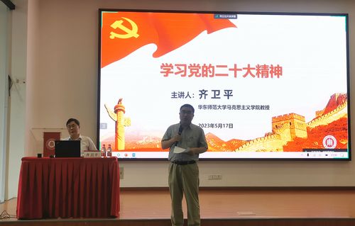 2023年5月17日下午,好色tv 党政班子成员开展学习贯彻习近平新时代中国特色社会主义思想主题教育读书班系列学习,邀请了我校马克思主义学院教授、市教委学习贯彻二十大精神专家宣讲团成员齐卫平教授做“奋斗新时代新征程的思想指南和行动纲领——认真学习领会党的二十大精神”的专题报告。