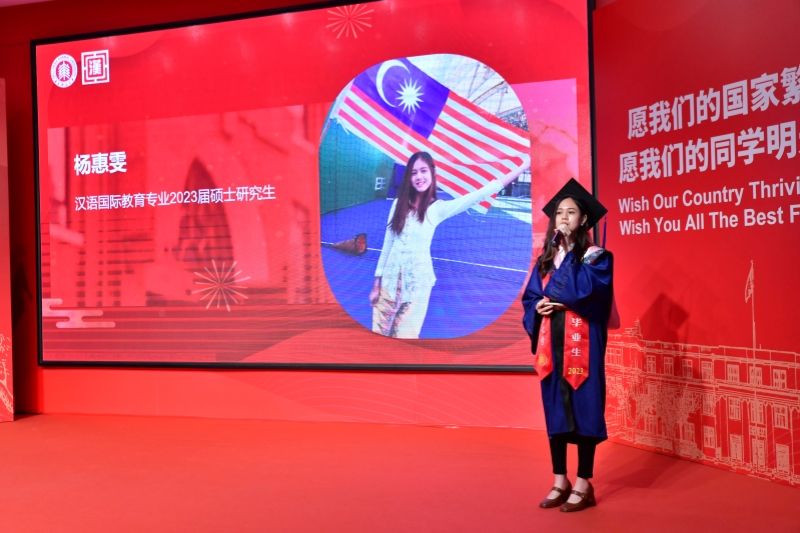 On the morning of June 21, 2023, the 2023 graduation ceremony and degree conferment ceremony of the School of International Chinese Studies was successfully held in the lecture hall on the second floor of the Physics Building in Putuo Campus.
